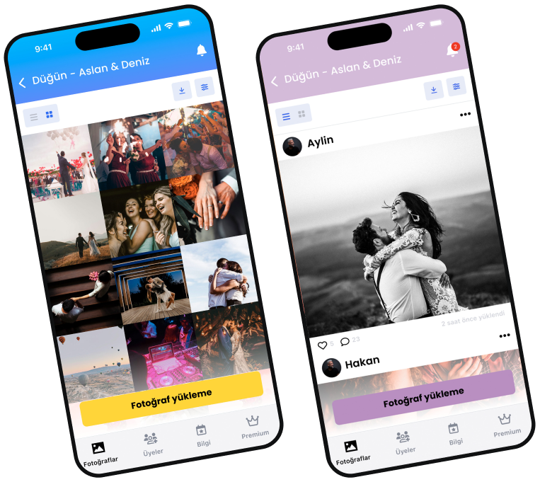 Artık tüm davetliler düğününüz sırasında çektikleri fotoğraf ve videoları paylaşabilir, beğenebilir, yorum yapabilir ve birbirleriyle sohbet edebilirler.